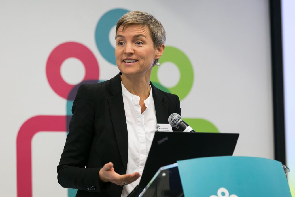 Leder for forebyggingsenheten, Helga Fastrup Ervik, holdt innlegget om Norges erfaringer. Last ned Erviks presentasjon.