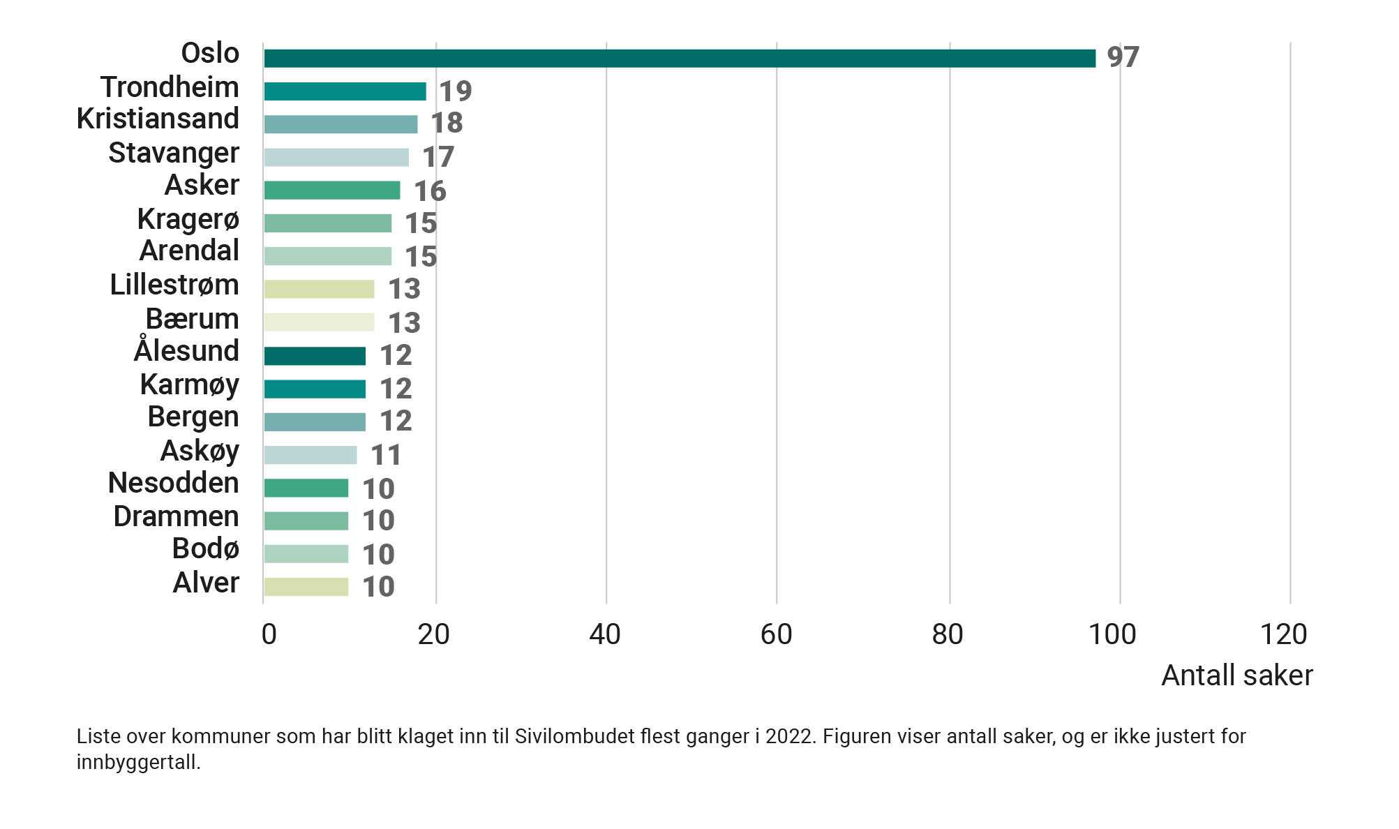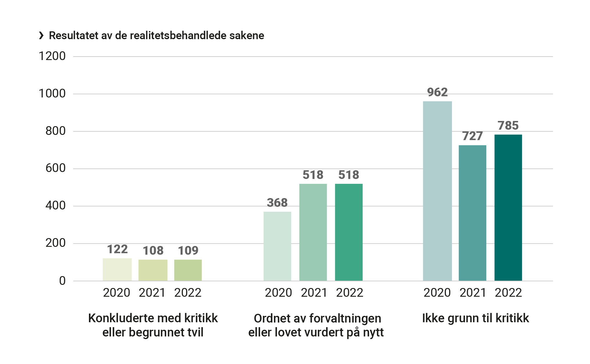 I langt flere saker vurderer vi klagen bare på grunn­ lag av sakens dokumenter uten å sende undersøk­elsesbrev til forvaltningen. En del av disse sakene ordner seg for klageren underveis, for eksempel etter en telefonhenvendelse fra oss. I andre saker konkluderer vi med at det ikke er grunn til kritikk av forvaltningen.