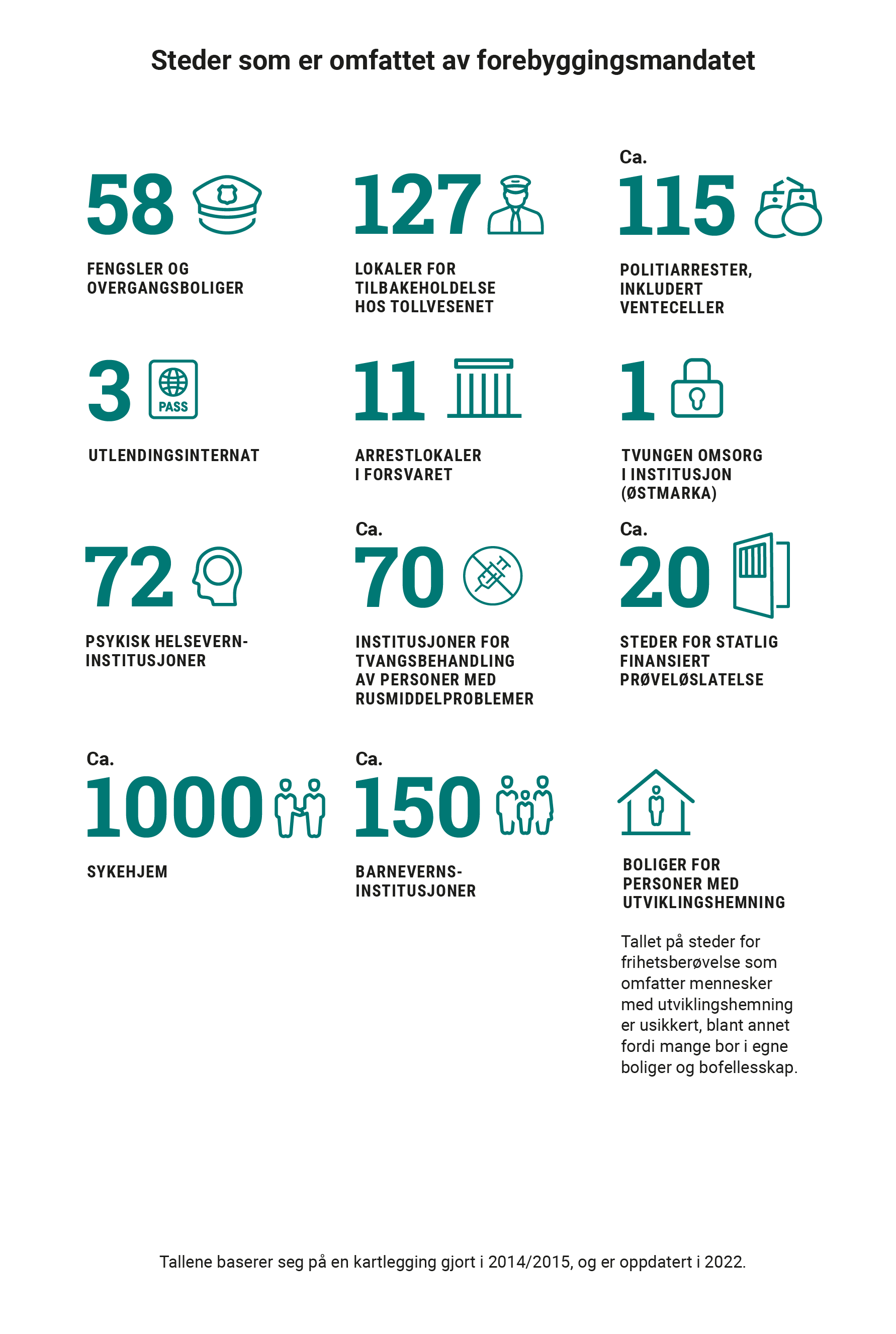 Sivilombudet har som en viktig oppgave å forebygge tortur og annen umenneskelig eller nedverdigende behandling på steder der mennesker er berøvet fri­ heten. Det er en sentral del av Sivilombudets mandat om å bidra til at forvaltningen respekterer og sikrer menneskerettighetene. I forebyggingsarbeidet gjøres dette ved å besøke steder hvor mennesker er fratatt friheten.